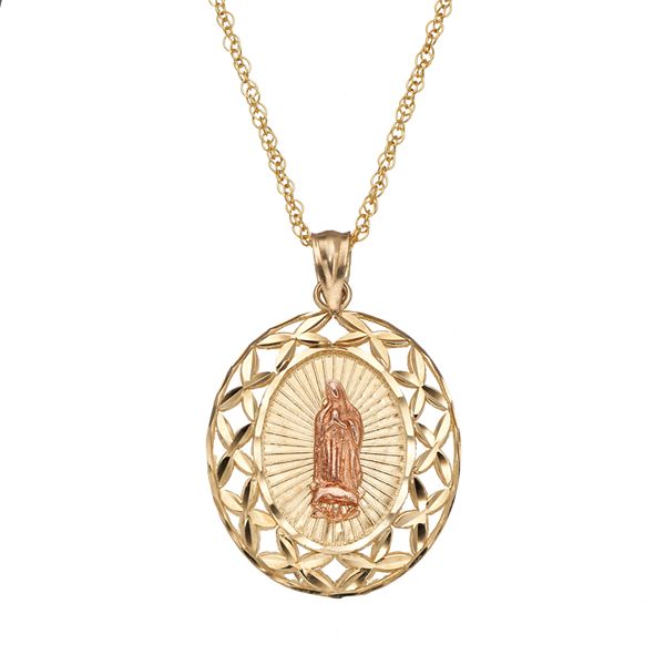 Real gold 14k tri color gold diamond cut our lady of guadalupe stamp religious charm tiny pendant for necklace or chain catholic virgin mary. 5 reviews write a review. Halo pendant light weight.total weight is 1.2 grams.condition new in box. You are bidding on a nice 14k yellow solid gold our lady of guadalupe pendant medal made in the usa. 1in x.5in your 14k gold guadalupe oval pendant has been carefully crafted to last you a lifetime.