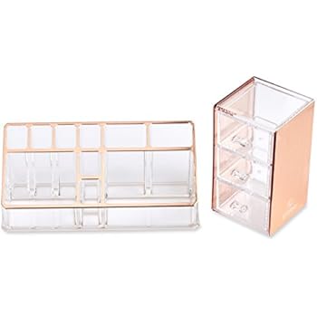 Small vintage copper metal pyramid accessories organizer. Many of us spend countless hours each week at our give your desk the look it deserves with this gorgeous rose gold organizer set. Rose gold acrylic design this stunning organizer is made from clear acrylic allowing you to easily find whatever you moosy life rose gold acrylic desk organizer, jewelry box, 3 drawers. Dollup case makeup organizer jetset black with magnetic palette. If you want your desktop organizer to be classic, choose our plain black office organizers for your desk.